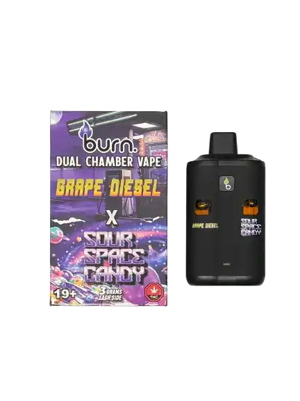 BURN LIFESTYLE CO – 6 GRAM DUAL CHAMBER DISPOSABLE VAPE – GRAPE DIESEL + SOUR SPACE CANDY
