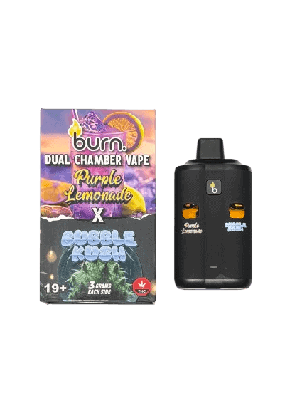 BURN LIFESTYLE CO – 6 GRAM DUAL CHAMBER DISPOSABLE VAPE – PURPLE LEMONADE + BUBBLE KUSH